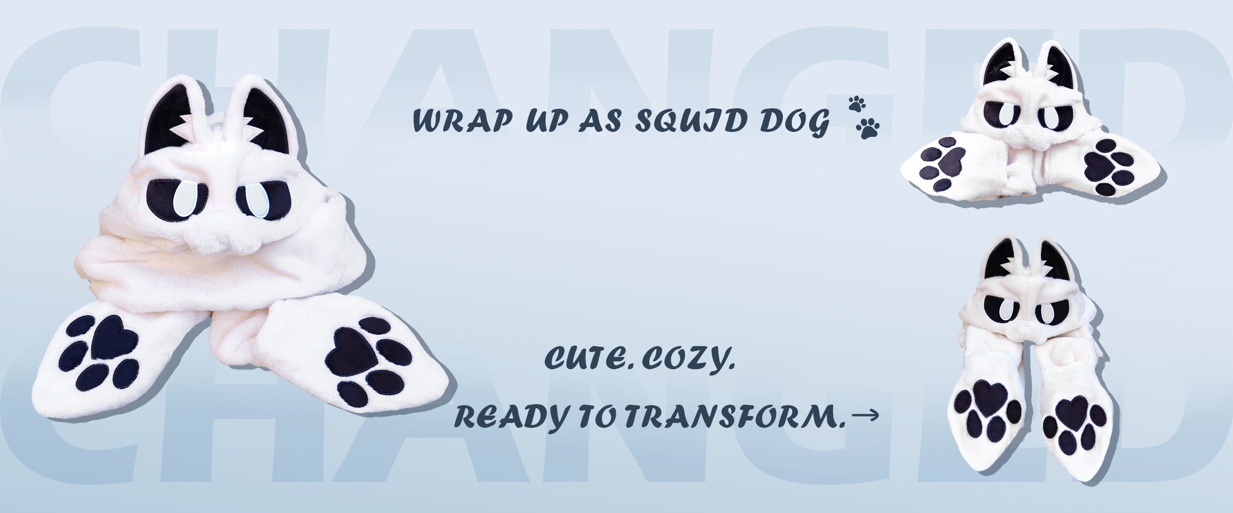 Changed Squid Dog Hooded Scarf, Glove Tail