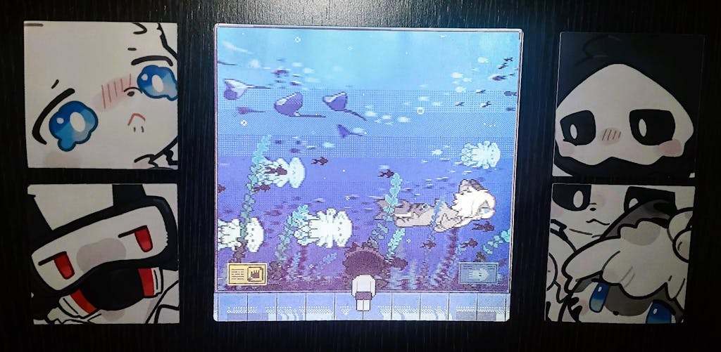 It's so beautiful, I've never had a 3D lenticular card and I loved the 3D visual effect, it's so cool and satisfying to see! It looks like the fish extend beyond the background and are at a closer distance, and if you look at it from different angles you can clearly appreciate the movement as Tiger Shark and the fish swim in the background, it's very adorable! It is also quite colorful and detailed, the pixel art style is great and the 3D design fits perfectly with Tiger Shark in an aquarium theme.