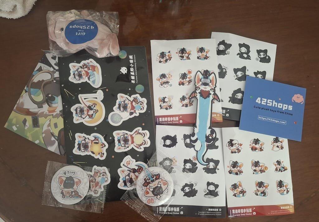 I must say I'm very happy with my plushie. It arrived within the estimated delivery time and in good condition. I loved the stickers and other extras that came with it. The fabric is incredibly soft, and it's a good size. I'm delighted with this purchase, and I especially appreciated the little free plushie that came with it. As always, I highly recommend shopping at 42shops.